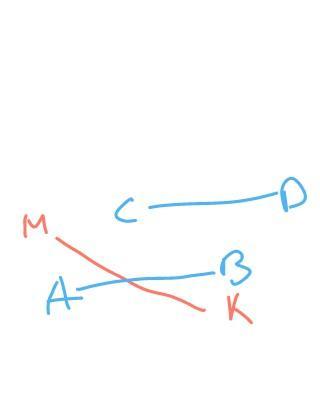 Задание 2. Начертите прямую МК и отрезки АВ и СД так, чтобы прямая МК пересекала отрезок АВ, но не пересекала отрезок СД.