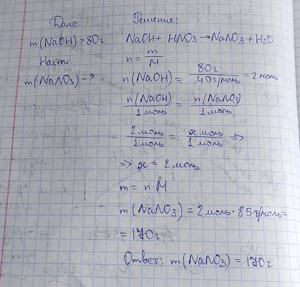 m(NaNO3)=n(NaNO3)*M(NaNO3)=2*85=170г