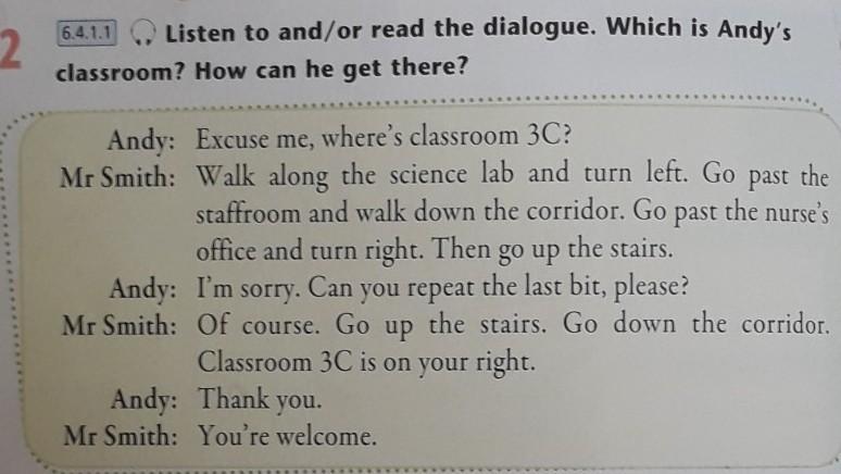 He need to walk along the lab and turn left. Go past the staff room and walk down the corridor, go past the nurses office and turn right. Then go upstairs.