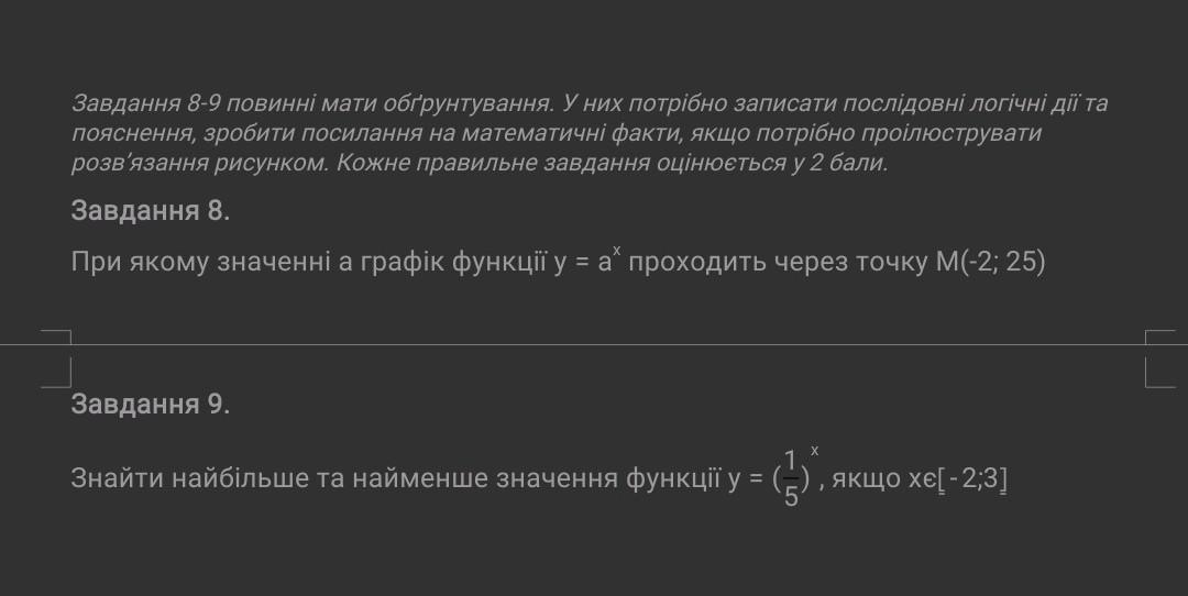 8 . y = a ˣ ; M( - 2 ; 25 ) ;