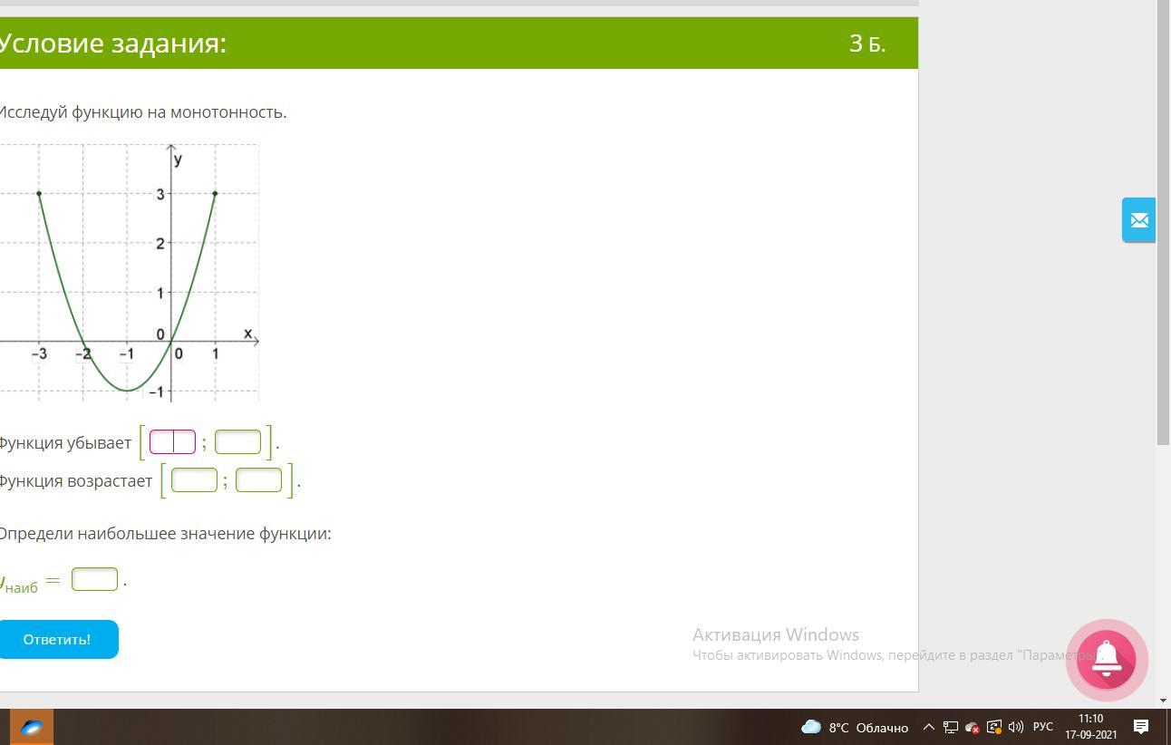 1 . Функція спадає на : [ - 3 ; - 1 ] ; функція зростає на : [ - 1 ; 1 ] .