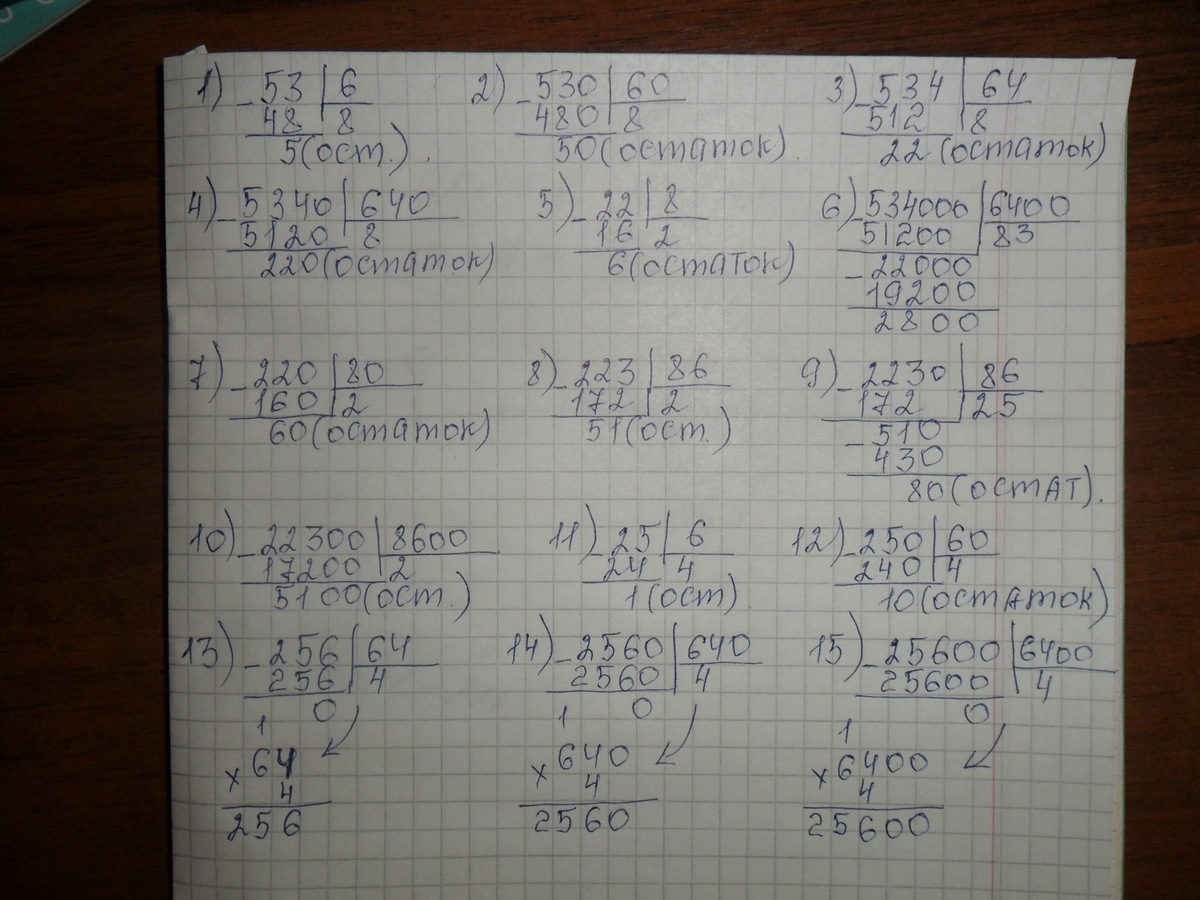 выполнить деление 53:6= 530:60= 534:64= 5340:640= 22:8= 534000:6400= 220:80= 223:86= 2230:86= 22300:8600= 25:6= 250:60= 256:64= 2560:640= 25600:6400=