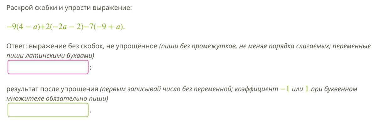 - 9( 4 - a ) + 2( - 2a -2 ) - 7( - 9 + a ) = - 36 + 9a - 4a - 4 + 63 - 7a = 23 - 2a .