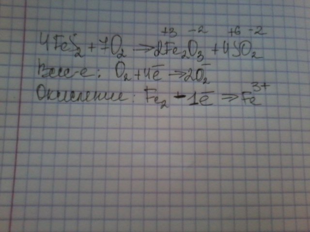 1) 4FeS2 (восс-ль) 11O2 (ок-ль) = 2Fe2O3 + 8SO2