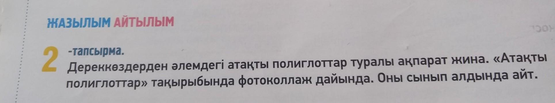 2. -тапсырма. Дереккөздерден әлемдегі атақты полиглоттар туралы ақпарат жина. «Атақты полиглоттар» тақырыбында фотоколлаж дайында. Оны сынып алдында айт. MUTLINLIM 2 тапсырма