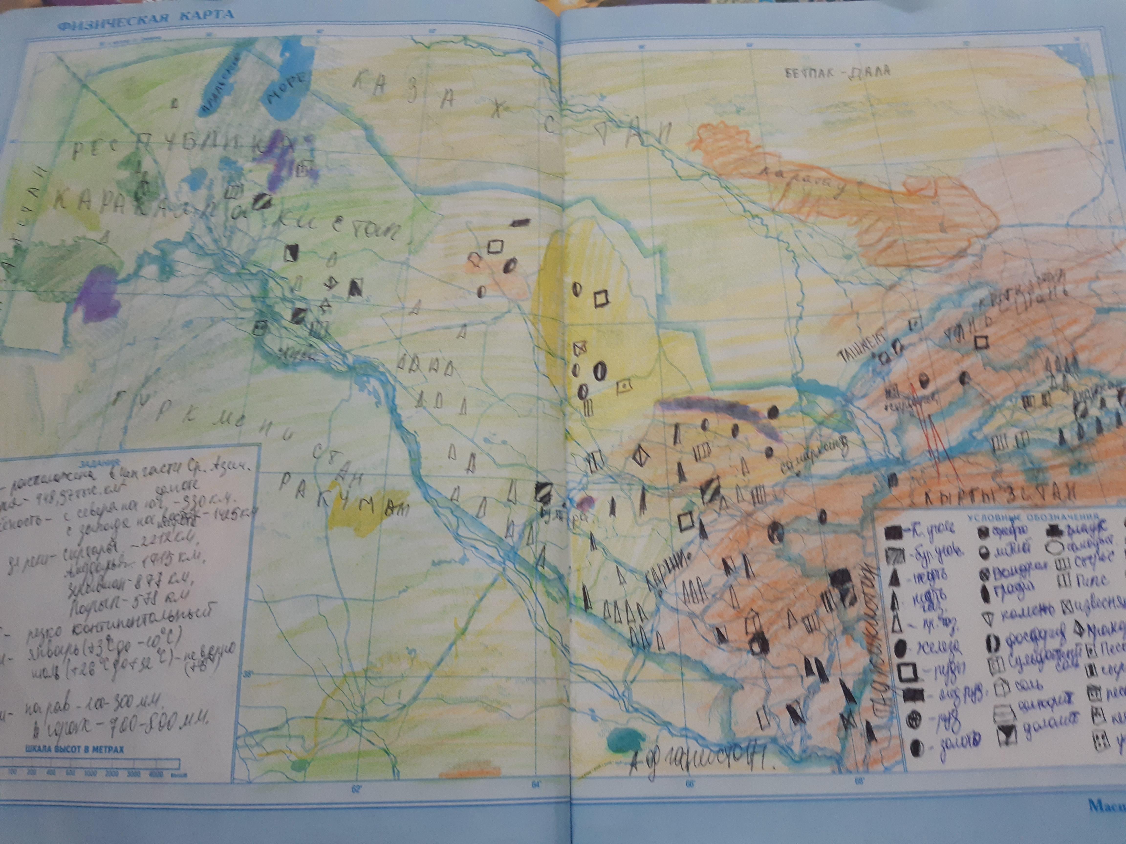 1. запишите в тетрадь и укажите какими условными знаками обозначены в учебном атласе понятия "орошаемые земли", "город с населением свыше 100 тысяч" и "газопроводы"