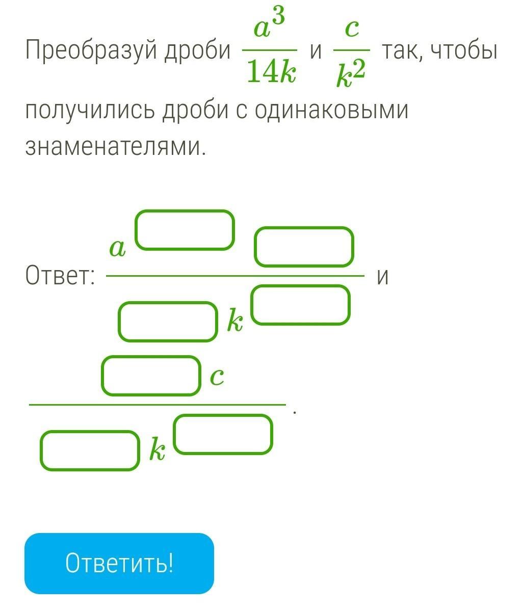 Преобразуй дроби a314k и ck2 так, чтобы получились дроби с одинаковыми знаменателями.