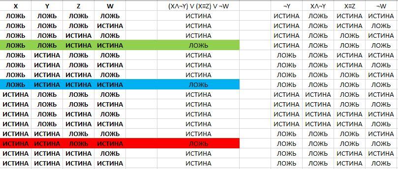 В итоге видим, что всего три строчки в полученной таблице имеют логический ноль в результате, как и в условии задачи.