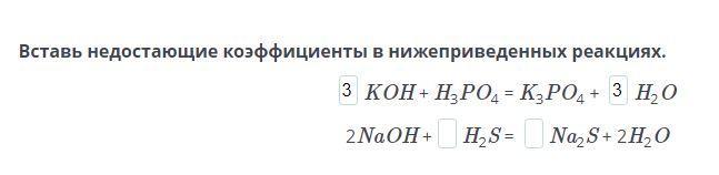 1) 3KOH + H₃PO₄ → K₃PO₄ + 3H₂O
