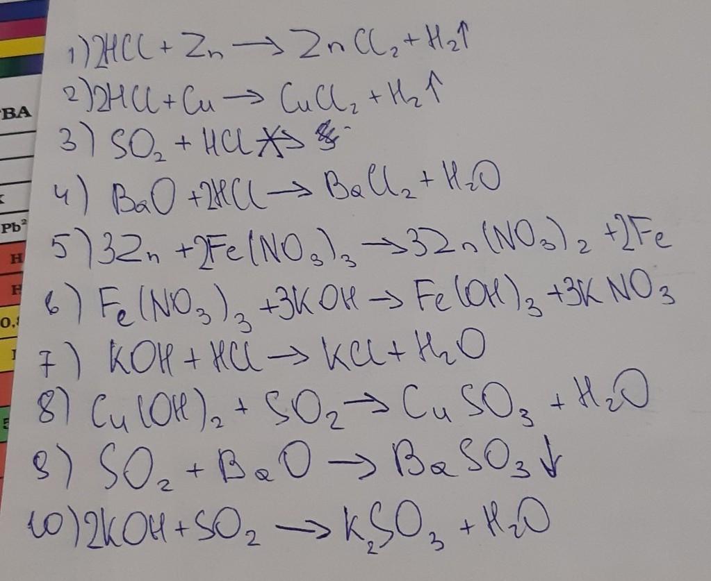 Составить всевозможные уравнения реакции между всеми данными веществами:
