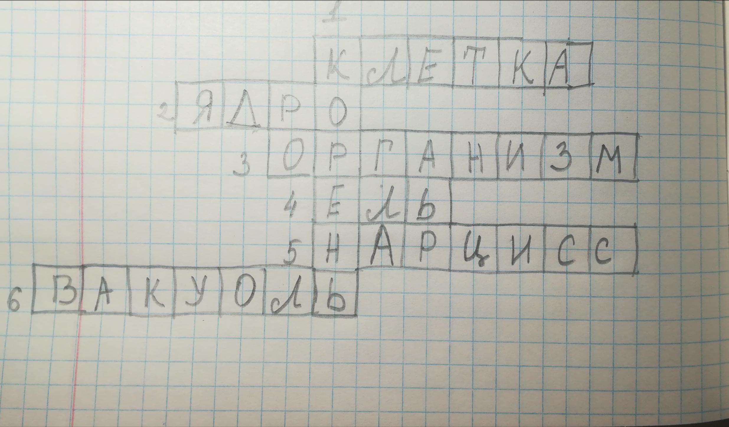 Ответ:1-корень, 2-ядро, 3-организм, 4-ель, 5-нарцисс, 6-вакуоль.