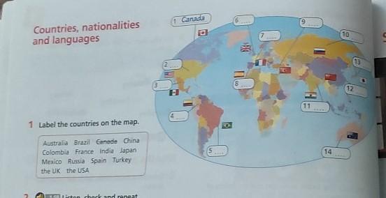 Canada Countries, nationalities and languages 1 Label the countries on the map 5 Colombia France India Japan Mexico Russia Spain Turkey the UK the USA