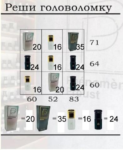 это как понимаю данные цифры обозначаются как сумма , х+у+z=71, 2e+y=64,x+y+e=60 , x+e+y=60 , 2y+x=52, z+2e=83