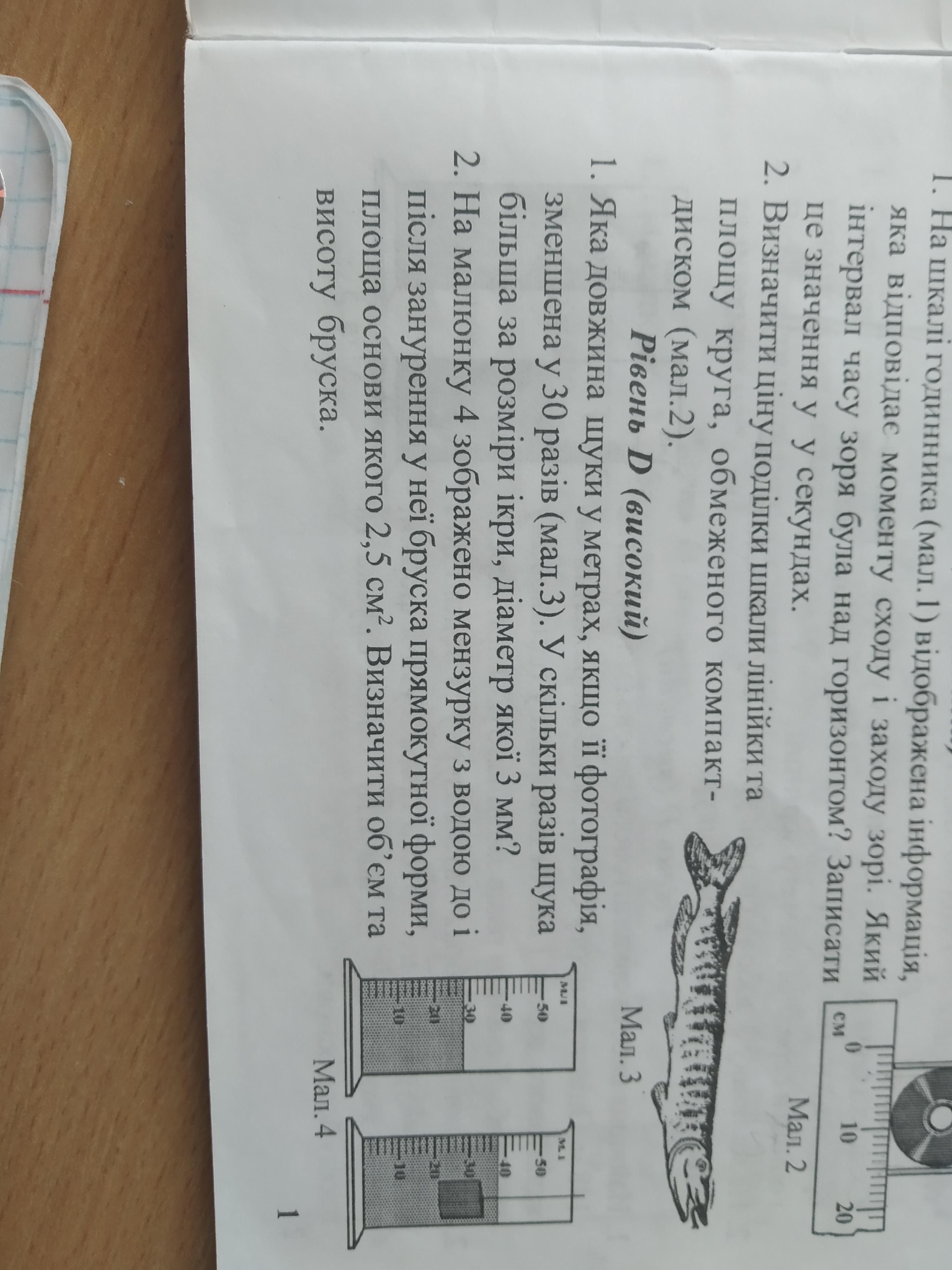 Яка довжина щуки у метрах якщо її фотографія зменшена у 30 разів (Мал. 3). У скільки разів щука більша за розміри ікри, діаметр якої 3 мм?