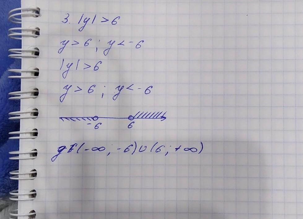 Расстояние должно быть больше 6, значит, в решение неравенства входят все числа большие 6 и меньшие -6.