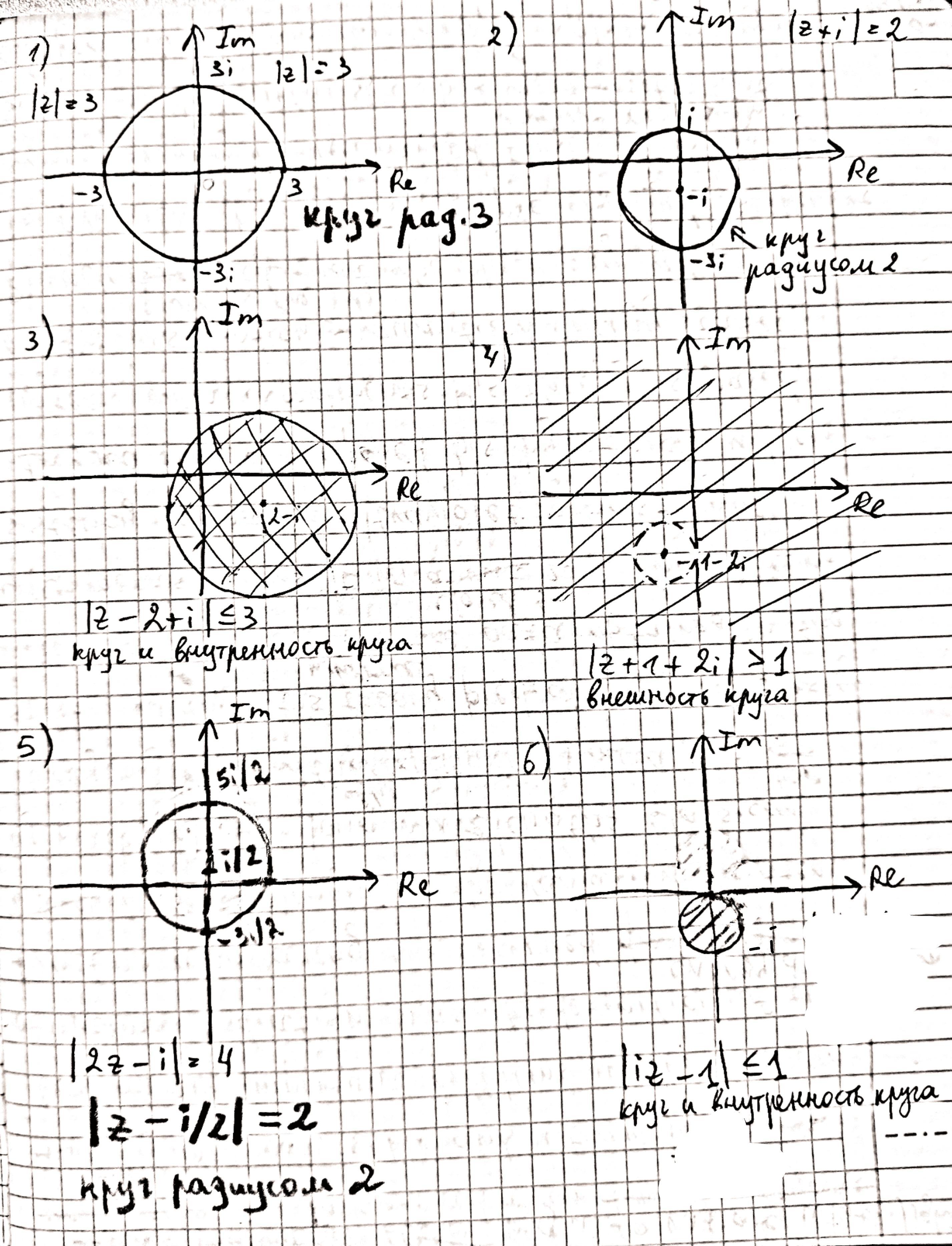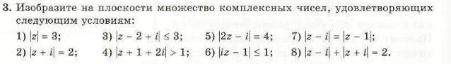 3. Изобразите на плоскости множество комплексных чисел, удовлетворяющих следующим условиям: