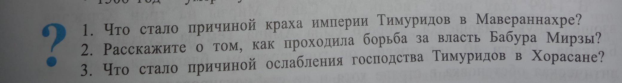 Объяснение:Рано лишившись отца, который погиб по нелепой случайности, 12-летний Бабур в трудной ситуации, не располагая опытом, боролся за власть в своем уделе. Однако, его амбиции стать главой всего Мавераннахра были столь велики, что в юном возрасте он решился бороться за власть. У него появилась идея воссоздать былую империю Тимуридов со столицей в Самарканде, где правил его двоюродный брат Байсункар Мирза. В 1497 году Бабур после семимесячной осады взял Самарканд и Байсункар мирза вынужден был бежать в Гиссар. В дальнейшем в борьбе за власть в Мавераннахре Бабур столкнулся с опытным полководцем Шейбани-ханом, которому было уже 50 лет. Междоусобицы среди тимуридов привели к поражению Бабура. 3 в 1506 году умер Хусейн Мирза после этого в стране установилась двоевластие и начали правлять с страной двое сыновья Хусейна Мирза. Надеюсь помогла;)