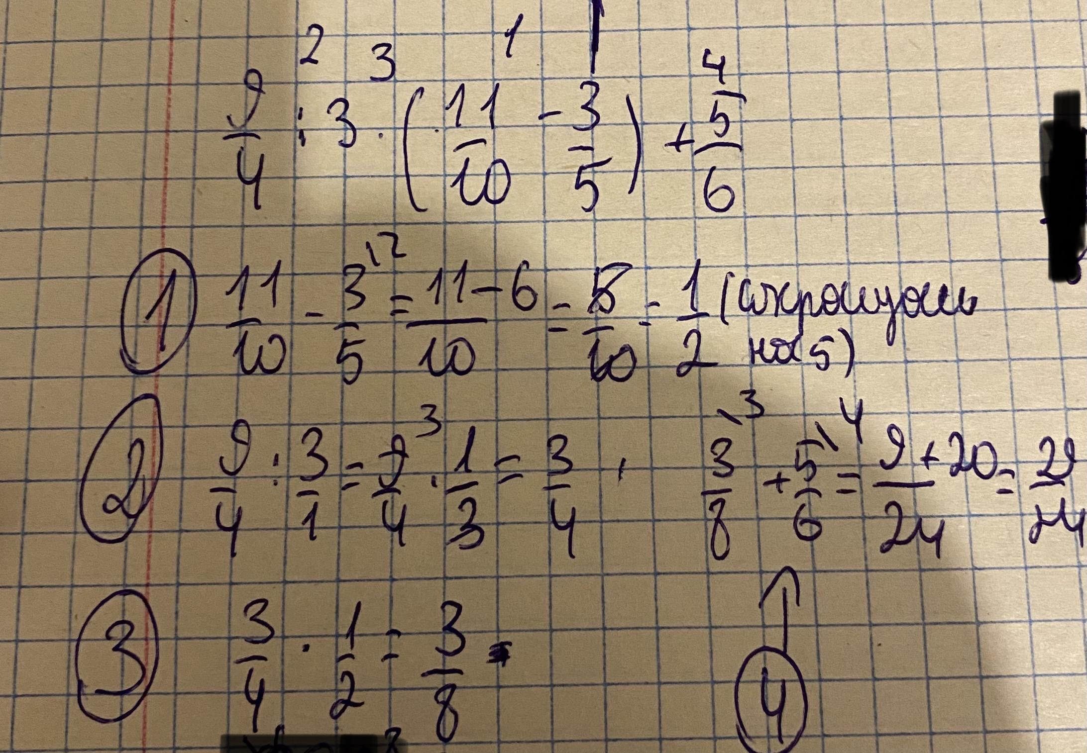 Ответ:Если что-то непонятно ,спрашивай!В кружочках -это действия .Всегда сначала считаем ,что в скобках,потом умножение и деление ,а уже только в конце сложение и вычитание