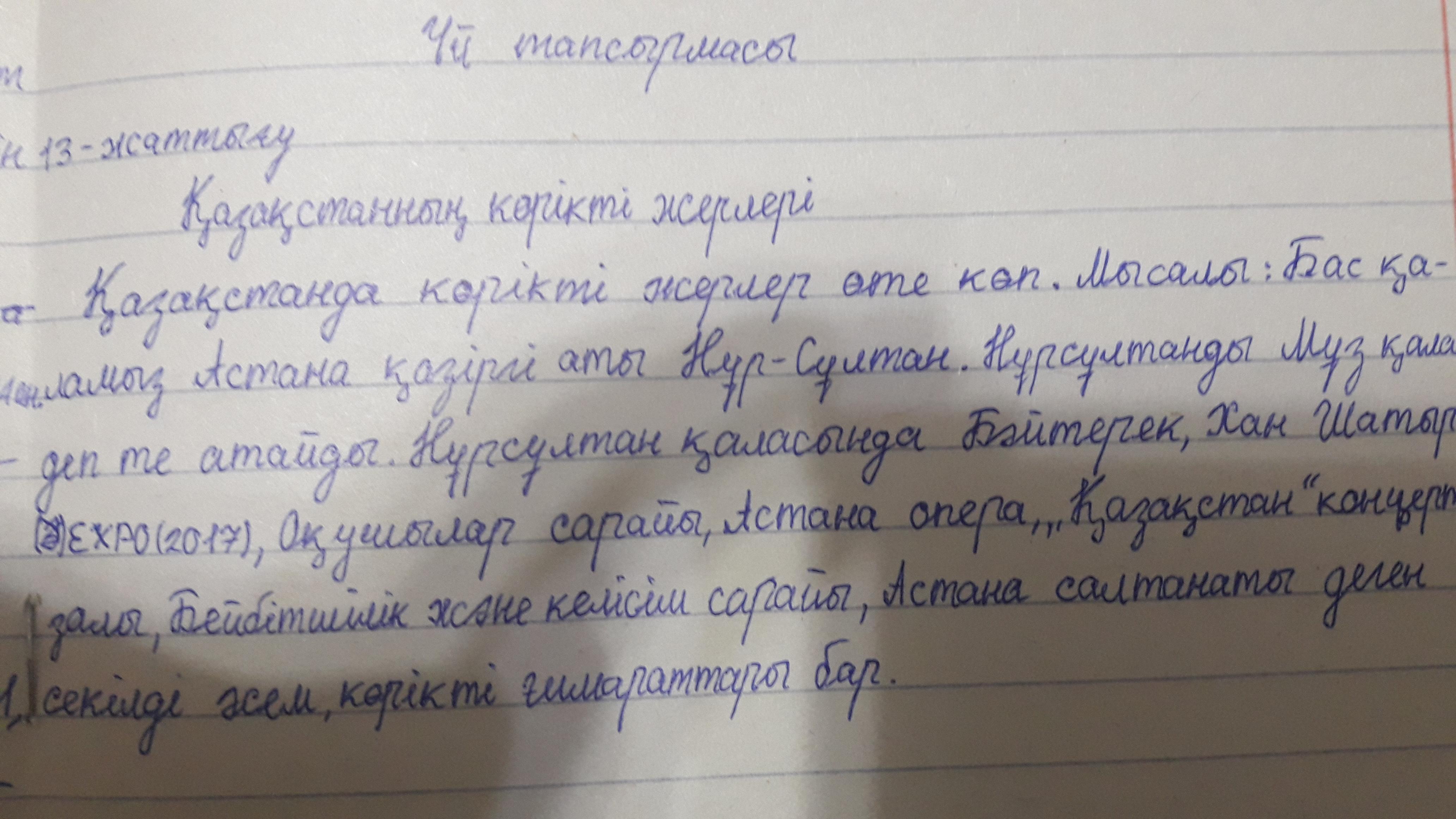 13-тапсырма. Энциклопедия, ғаламтор, баспасөз құралдарынан «Қа зақстанның көрікті жерлері» тақырыбына мәліметтер тауып, диаграмма, сызба, кесте сыз.