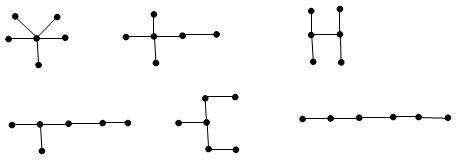 Сколько существует различных деревьев из 6 вершин? Напомним, что если графы по-разному, но полностью совпадают по степеням вершин, такие графы считаются одинаковыми