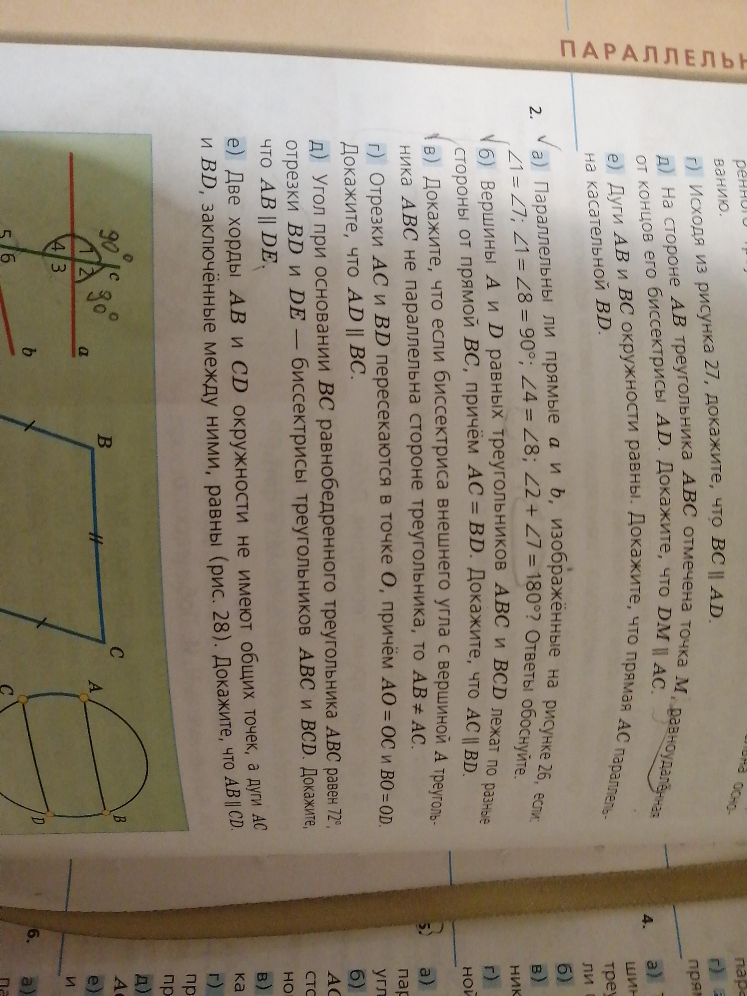 4) Из выше сказанного, мы получаем, что у бес. BD < – смежные и <ABD = <BDE = 36°, а значит прямые DE и AB не пересекаются, т.е. параллельны.