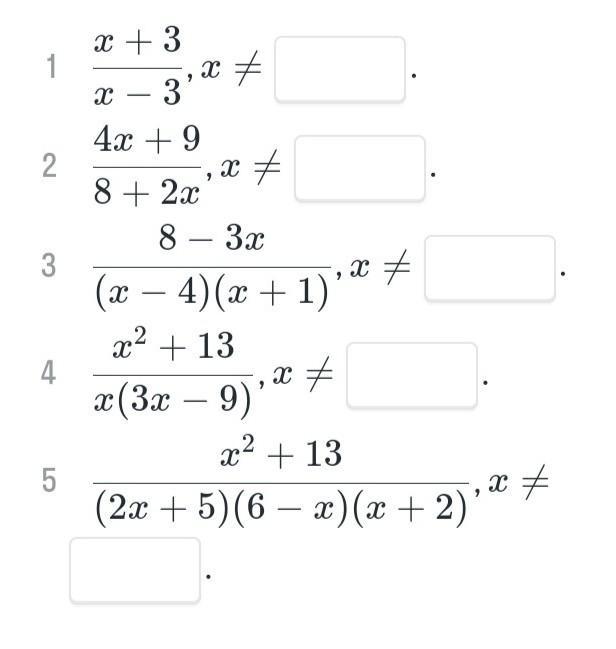 помогите пожалуйста, какие значения переменной x являются недопустимыми значениями каждого рационального выражения?