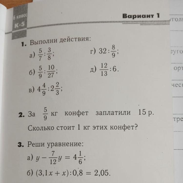 1.а) вторую дробь переворачиваем, меняем деление на умножение, и находим общий знаменатель. 5/7:3/8=5/7*8/3=40/21