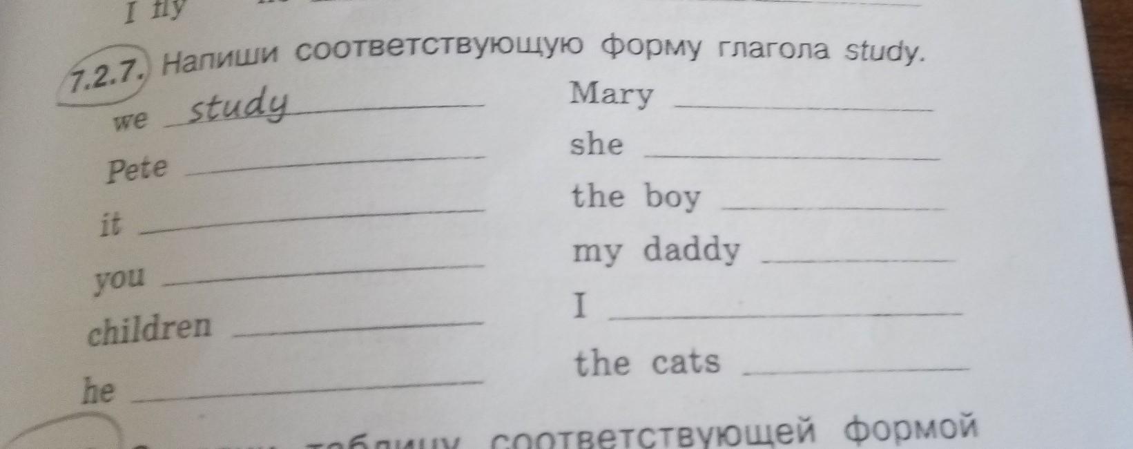 1.2.7. Напиши соответствующую форму глагола study. Mary we study Pete she it the boy you my daddy I children he the cats