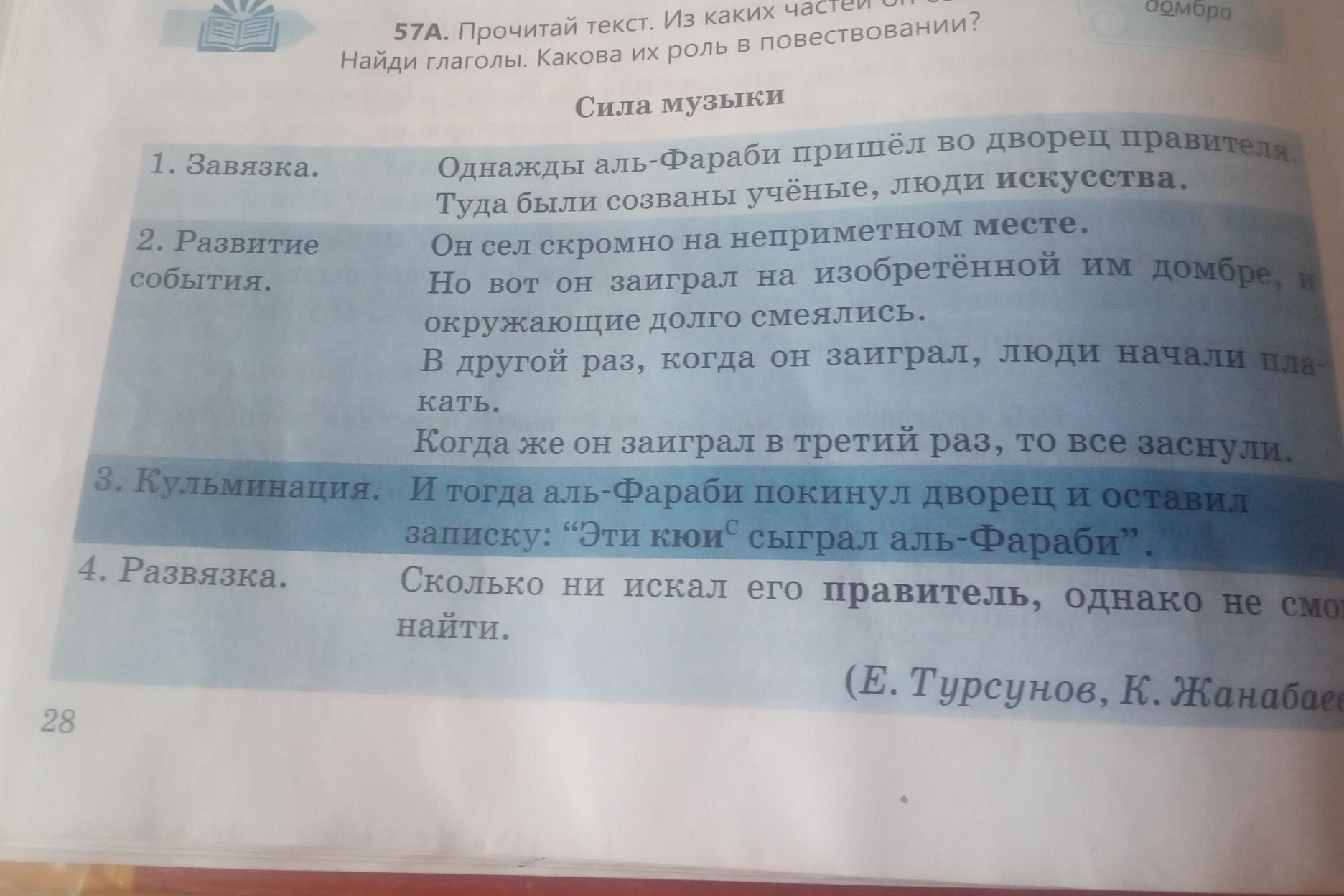 Сила Музыки 57 а Прочитай текст Из каких частей он состоит Найди глаголы Какова их роль в повествовании