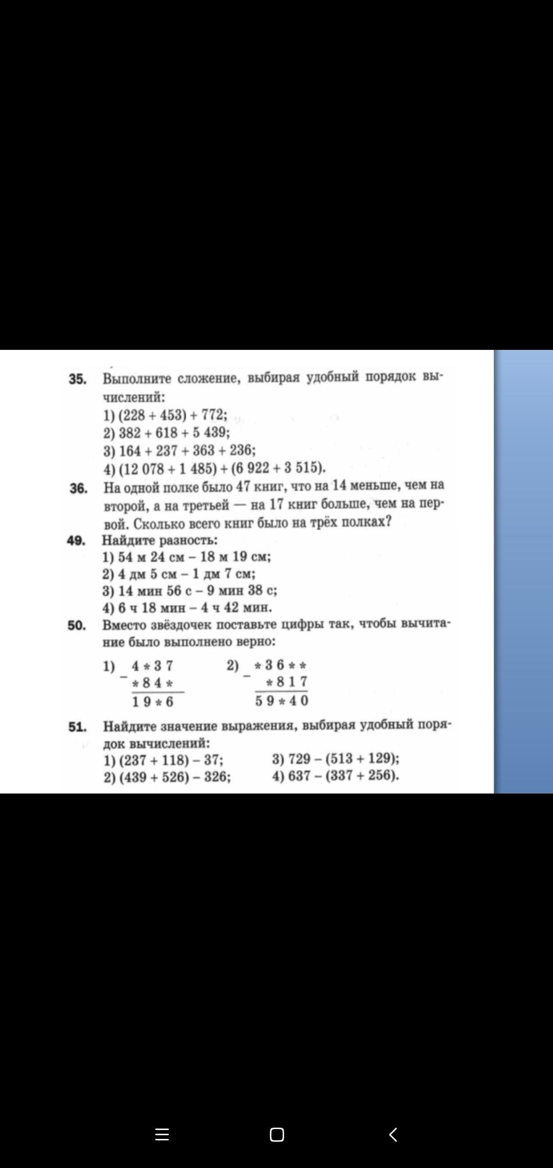49) 1)54м 24см - 18м 19 см = 36 м 5 см
