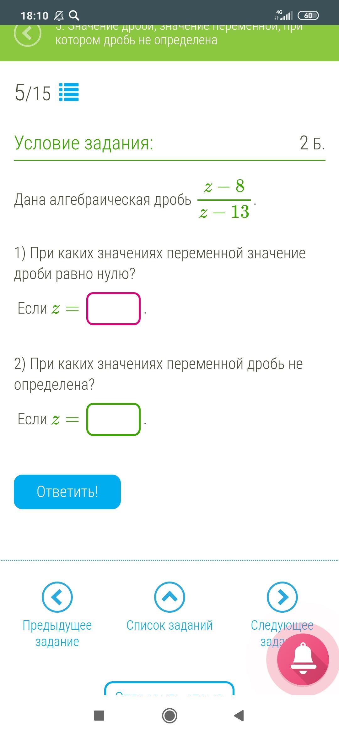 1)8, т.к дробь равна нулю, когда числитель равен нулт