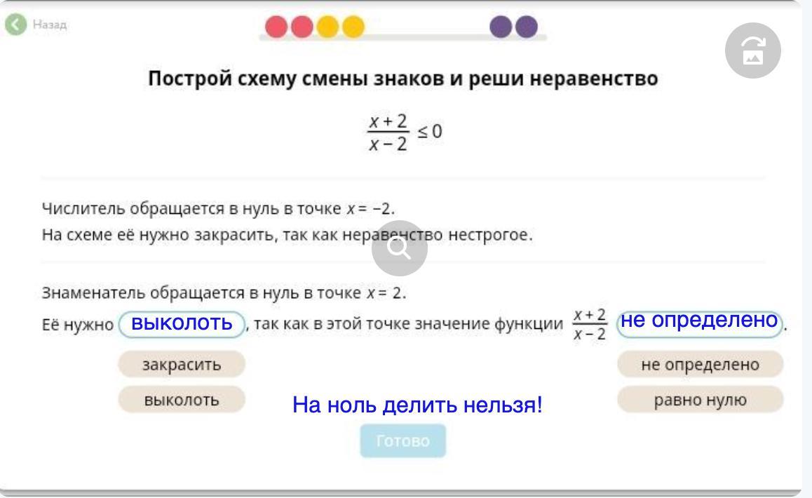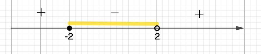 Так как знак нашего неравенства ≤, решением будет промежуток со знаком МИНУС: