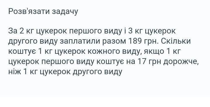 Нехай 1 кг цукерок другого виду- х, тоді 1 кг цукерок першого виду х+17