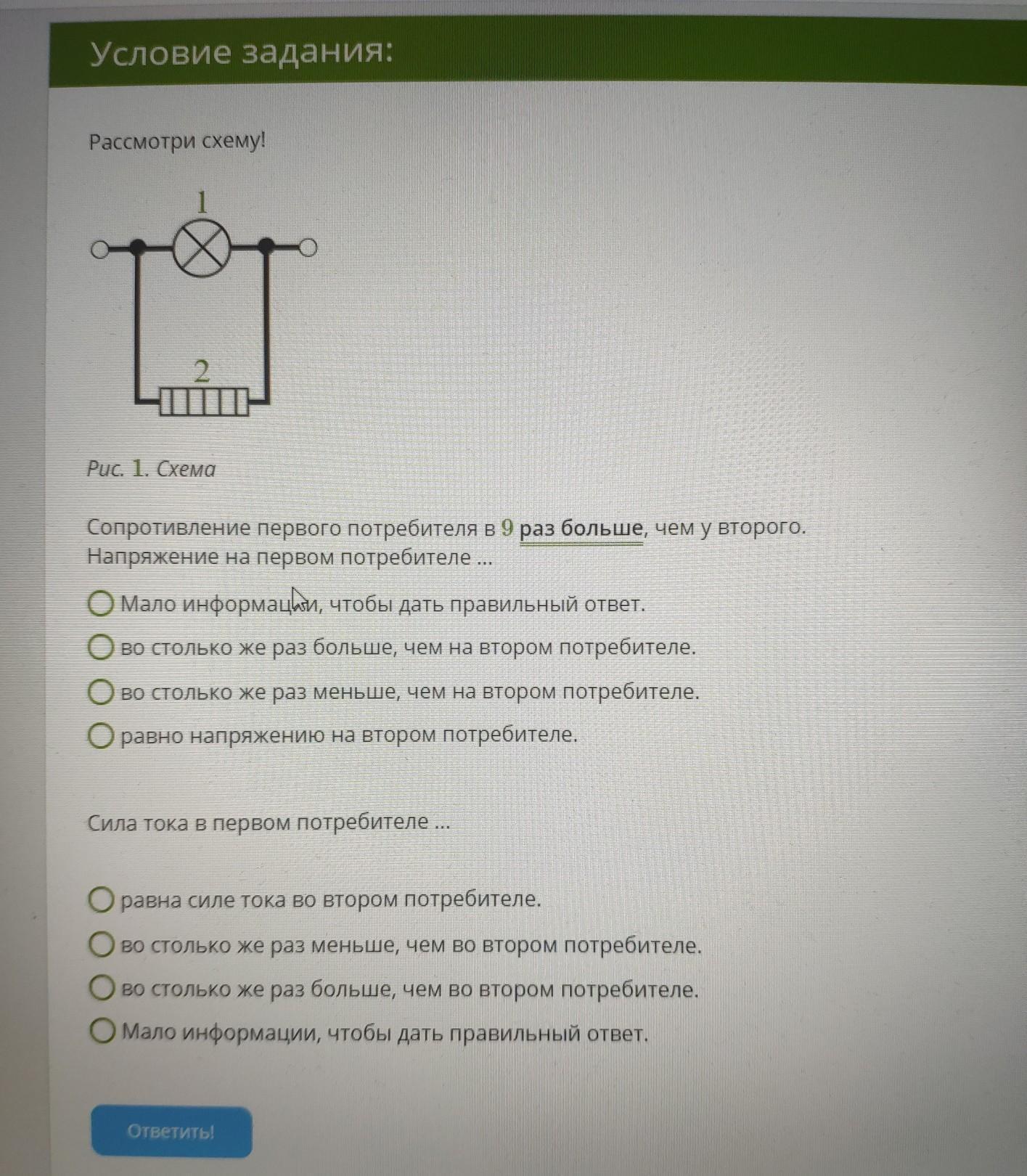 сила тока во столько же раз меньше чем во втором (по условию в 9 раз)