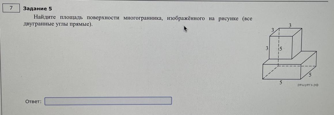 Найдите площадь поверхности многогранника, изображённого на рисунке (все