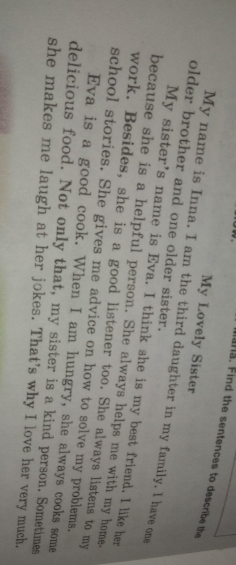 Мою сестру зовут Ева. Я считаю её своим лучшим другом. Я люблю её потому что она человек который может помочь. Она всегда помогает мне с домашним заданием. Между прочим, она хороший слушатель. Она всегда слушает мои школьные истории. Она даёт мне советы о том как решить мои проблемы.