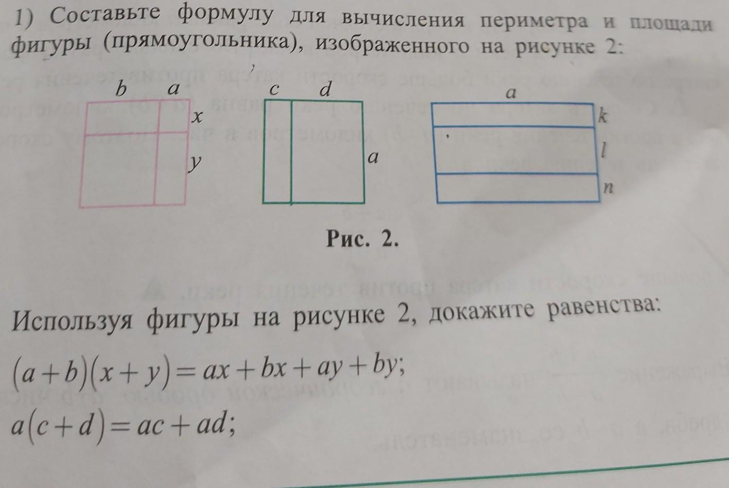 1) Составьте формулу для вычисления периметра и площади фигуры (прямоугольника) изображенного на рисунке 2: