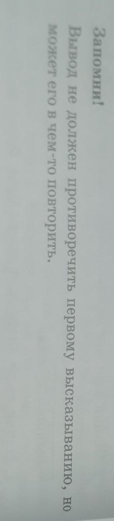 Русс.летер стр 42 Запомни! Вывод не должен противоречить первому высказыванию,нр может его чем-то повторить.