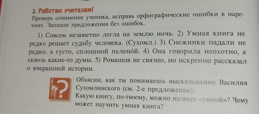 1) Совсем незаметно/не заметно легла на землю ночь. 2) Умная книга нередко решает судьбу человека. 3) Снежинки падали не редко, а густо, сплошной пеленой. 4) Она говорила не охотно, а сквозь какие-то думы. 5) Ромашов несвязно, но искренно рассказал о вчерашней истории.