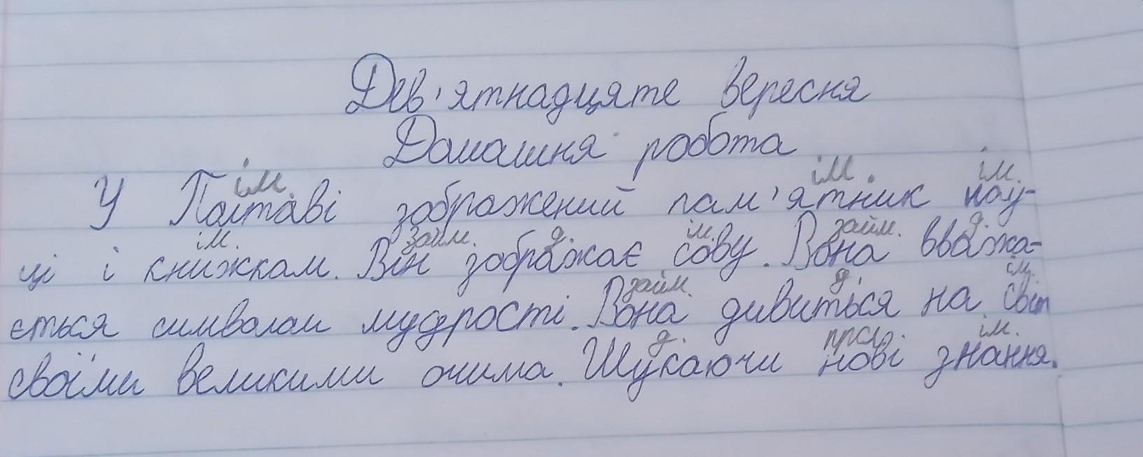 (У) (а) (зображений) (символом) (мудрості) (своїми) (великими) (очима) потрібно написати над словами частини мови
