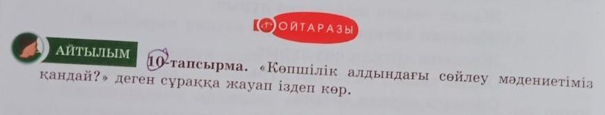АЙТЫЛЫМ 10-тапсырма. «Көпшілік алдындағы сөйлеу мәдениетіміз қандай?» деген сұраққа жауап іздеп көр.