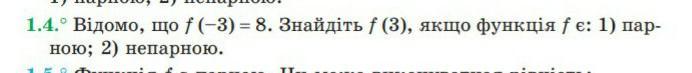 1.4 . f( - 3 ) = 8 ; 1) якщо f - парна функція , то f( 3 ) = f( - 3 ) = 8 ;
