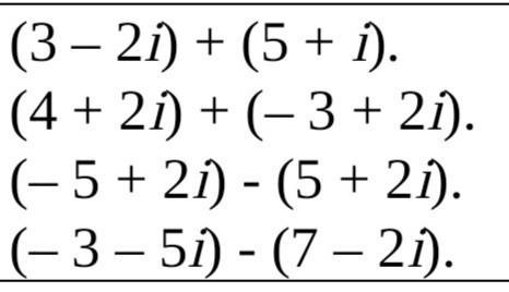 ( -3-5i)- (7-2i)=( -3 -7 )+(-5i+2i)= -10- 3i