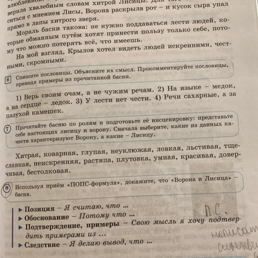 Используя приём «попс-формула», докажите, что «Ворона и Лисица»