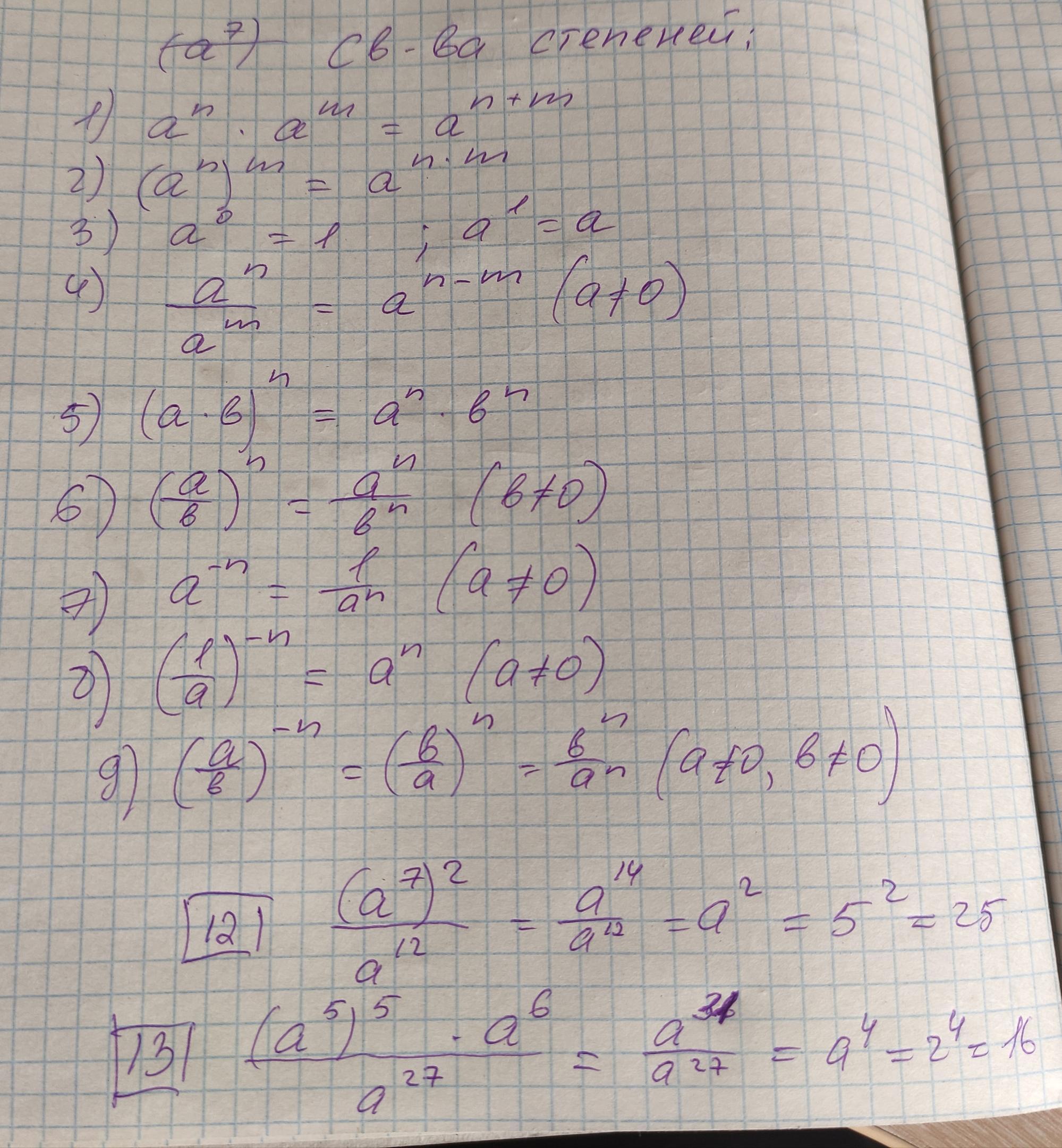 Я написал тебе свойства степеней, а затем решил твои номера. Выучи свойства, и для тебя решение таких примеров будет пустяком.