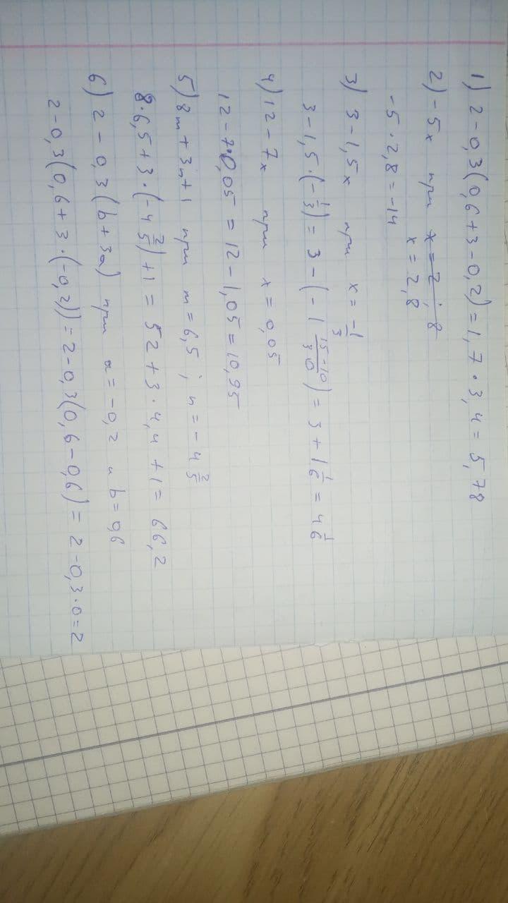 6) 2-0,3(b+3a) при а= -0,2 и b =0,6