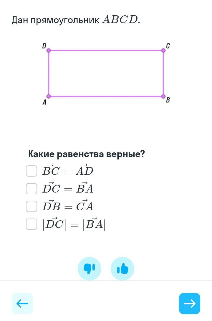 Векторы BC и AD коллинеарны, сонаправленные и их длины равны => равенство верно.