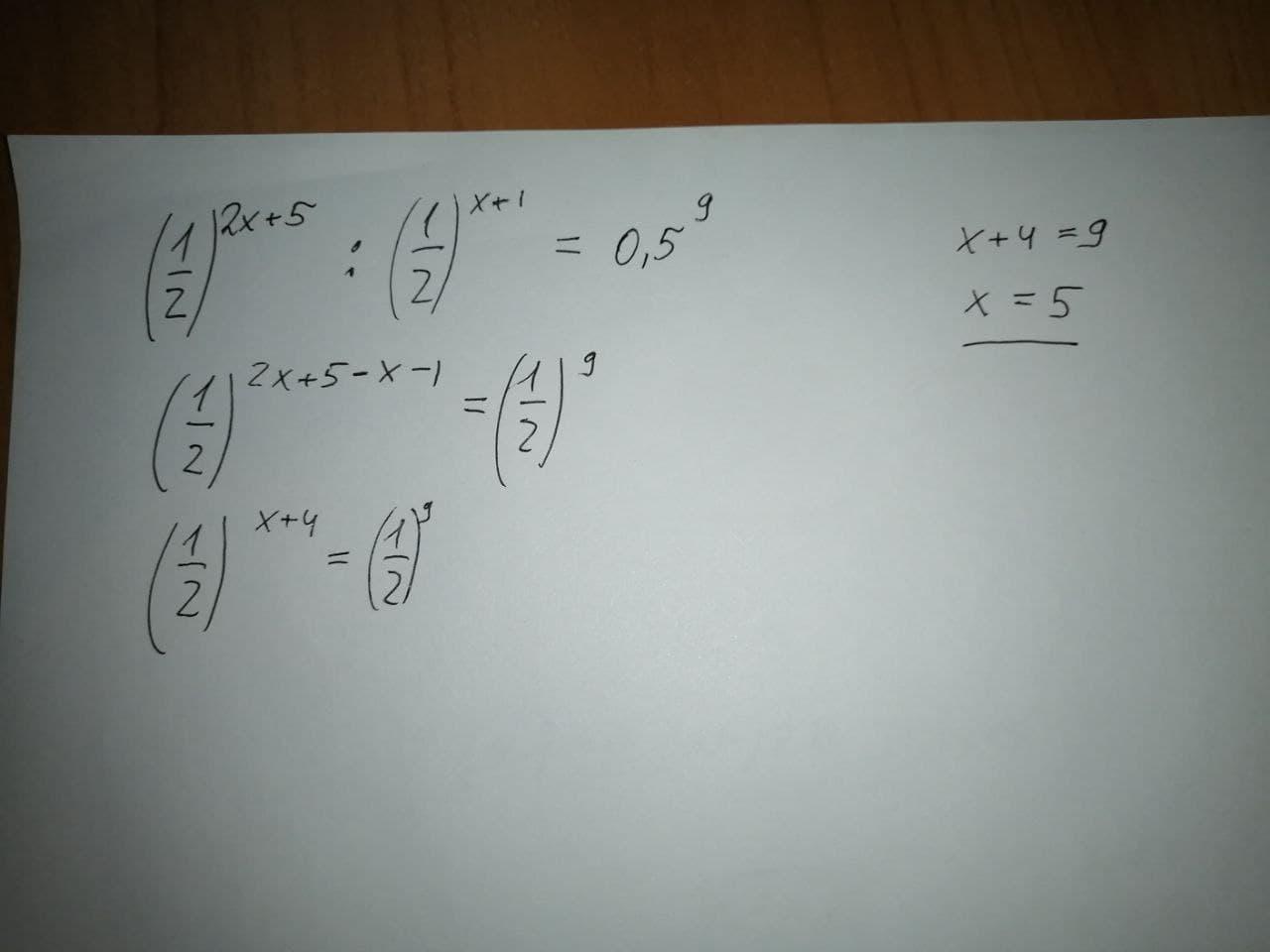 0,5^ 2х+5 : 0,5 ^ Х+1 = 0,5^9
