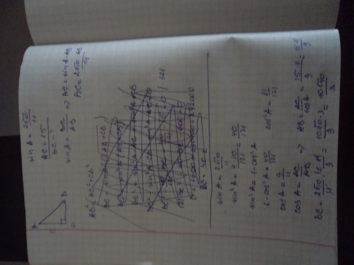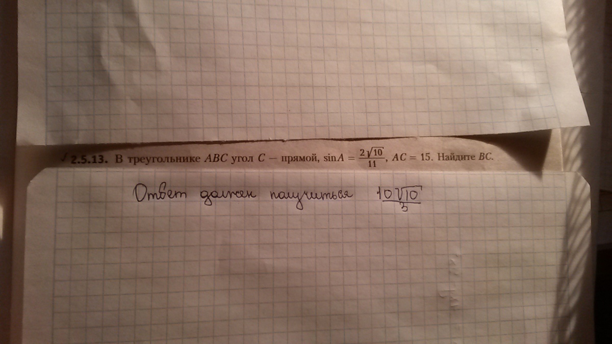 В треугольнике ABC угол C - прямой, SinA = 2 корень из 10 / 11 , ac = 15. Найдите BC.