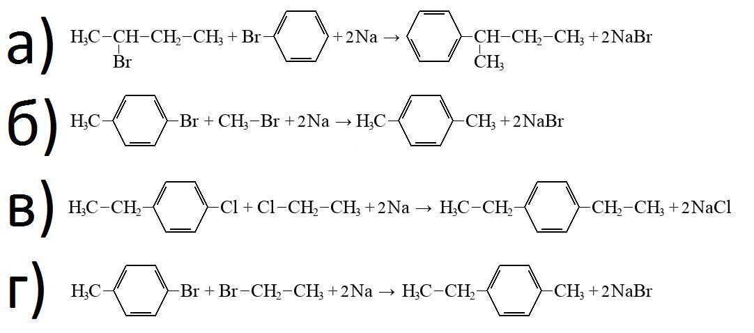 натрію) ароматичні вуглеводні: а) вторинний бутилбензен; б) параксилен; в) 1,4-діетилбензен; г) 1-метил-4-етилбензен?